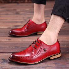 英伦发型师皮鞋男尖头商务休闲皮鞋低帮系带单鞋潮流时尚男士婚鞋