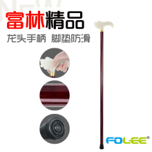 Folee/富林 红色木质拐杖 老人白脂龙手柄 实木单拐伸缩手杖手杖