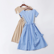 夏装2017新款中长款气质甜美校园风文艺显瘦棉麻短袖连衣裙4913