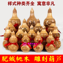 纯桃木雕刻葫芦镇宅招财进宝吉祥五福临门保平安家居风水饰品摆件