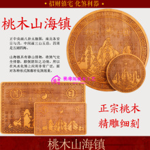 纯桃木精品雕刻山海镇圆形方形山海镇宅辟邪化煞家居风水挂件摆件