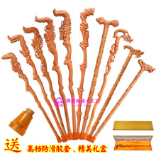 桃木手杖实木雕刻龙头拐杖拐棍老人杖助行器祝寿礼品送礼盒防滑垫