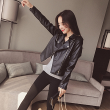 秋季新款韩版2016女装机车皮衣女短款帅气翻领长袖修身皮夹克外套