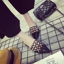百搭铆钉尖头平底单鞋浅口豆豆鞋女夏2017春季新款柳丁平跟学生鞋
