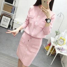 春秋韩范女装显瘦针织短款开衫小外套毛衣包臀裙时尚两件套装春装