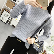2016秋冬季女士修身一字领套头毛衣打底衫韩版紧身针织衫冬装上衣