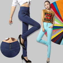 2015夏季糖果色彩色铅笔裤女高腰休闲裤显瘦小脚铅笔裤紧身长裤子