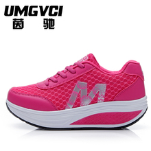 夏季舒适透气网布运动鞋女摇摇鞋增高网鞋网面跑步鞋韩版超轻女鞋