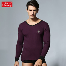 华之吉男士秋衣单件纯色V领含羊毛男式薄款修身打底保暖内衣