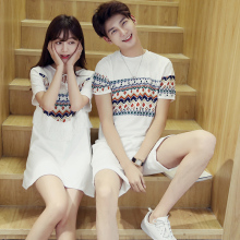2017情侣装夏装新款韩版男短袖T恤衫上衣学生连衣裙民族风裙子女