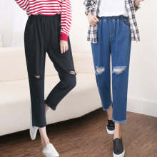 大码女装牛仔裤2016秋季新款韩版胖妹妹宽松显瘦破洞哈伦九分裤子