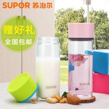 苏泊尔耐热玻璃杯防漏便携男士女士水杯单层带盖便携大容量办公杯