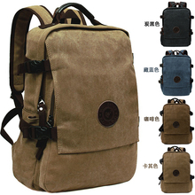 帆布双肩包15.6寸电脑包 男女户外背包旅游休闲包 四方耐用复古包