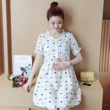 孕妇夏装连衣裙2017中长款上衣新款短袖显瘦高腰雪纺碎花孕妇长裙