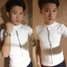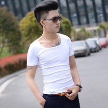 2017夏季韩版修身型低领体恤男净面静版短袖t恤男紧身打底衫潮流