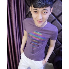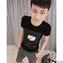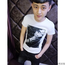社会小伙短袖男精神2017新款韩版修身夜店青年圆领半截印花t恤潮