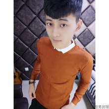 2016秋冬新款毛衣男韩版衬衫领假两件套头紧身打底针织衫线衣潮流