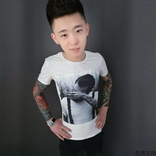 快手红人同款短袖男T恤圆领夏季紧身半袖印花精神社会小伙上衣潮