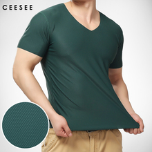 男士无痕短袖内衣V领t恤冰丝莫代尔紧身半袖健身纯色薄款打底衫