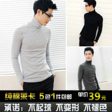 包邮男士纯棉莱卡纯色高领长袖 韩版男t恤修身棉打底衫单件紧身潮