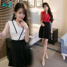 2017夏季新款韩版女装名媛气质收腰显瘦a字裙性感深V大摆连衣裙潮