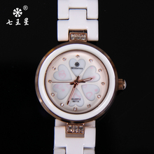 七王星品牌时尚心形女士石英表陶瓷表带腕表情侣镶钻女学生手表