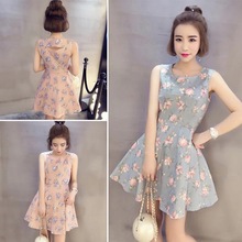 裙子夏季2017新款女潮学生韩版小清新春季时尚夏天无袖碎花连衣裙