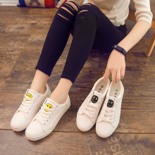 2016百搭笑脸小白鞋女系带白色韩版运动鞋皮面松糕底休闲学生板鞋