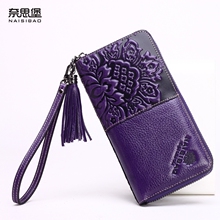 奈思堡真皮钱包女长款拉链头层牛皮小钱夹复古新款女士钱包简约潮