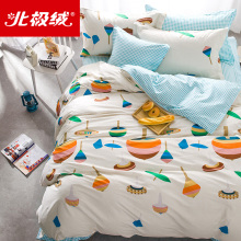 北极绒家纺 全棉斜纹印花四件套 春夏秋 简约清新套件单双人清仓