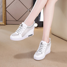 夏季水钻内增高网鞋女百搭透气休闲鞋2017新款网纱韩版单鞋运动鞋