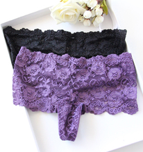 出口欧美外贸平角丁字内裤 T裤性感蕾丝 透明大码胖MM内裤诱惑