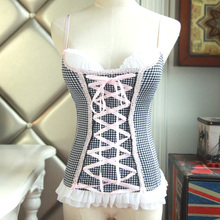 新品连体内衣蕾丝镂空露背设计性感小夜衣交叉带个性款黑色白色