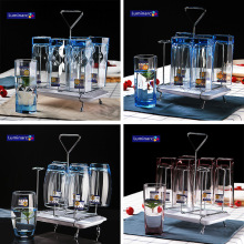 乐美雅家用透明彩色玻璃杯耐热茶水杯牛奶杯饮料果汁杯沥水架套装