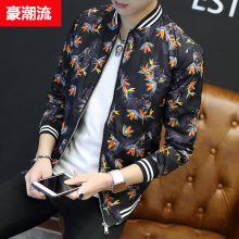 春季男士上衣修身青年花色长袖棒球领夹克男中学生碎花帅气衣服潮