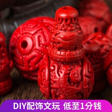 月半牙 龙纹朱砂三通佛头雕花佛塔diy配件佛珠手链星月菩提配饰