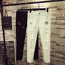 胖妹妹2017夏装新款女装大码牛仔裤小脚裤韩版实拍破洞长裤200斤