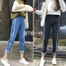 2017春夏新款女装韩版BF风宽松牛仔裤女九分裤原宿百搭高腰哈伦裤