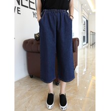 2017夏季新款韩国复古宽松高腰松紧腰七分九分阔腿牛仔裤阔脚裤女