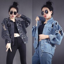 牛仔外套女2017春秋季新款韩版宽松长袖破洞牛仔衣学院风bf短褂子