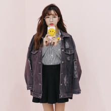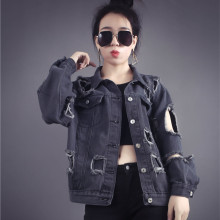 韩版春季宽松复古bf风大破洞乞丐牛仔外套女学生休闲黑色夹克上衣