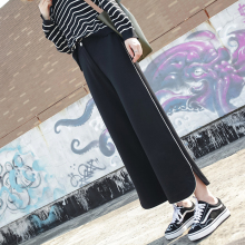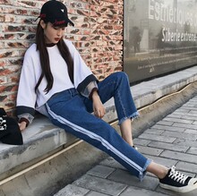 2017春夏新款女裤宽松毛边牛仔裤女直筒流苏运动风学生九分阔腿裤