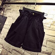 2017夏装新款大码女装胖mm韩版时尚休闲松紧腰破洞牛仔短裤女热裤