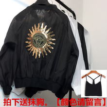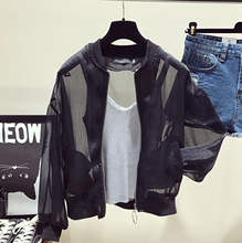 2017韩版夏季百搭沙滩防晒衣长袖女欧根纱女士棒球衫原宿短款外套
