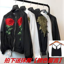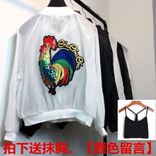 2017夏季韩版新款贴布刺绣防晒衣女宽松bf棒球衫短款沙滩服外套潮
