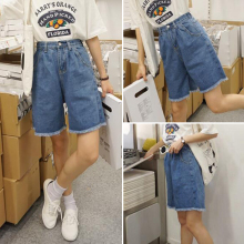 夏韩版牛仔短裤裙女松紧高腰阔腿宽松显瘦五分裤学生韩国简约中裤
