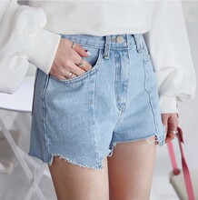 2017夏季新款女装韩版高腰牛仔短裤女夏热裤显瘦不规则下摆牛仔裤