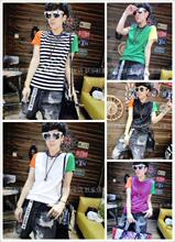T恤女韩版欧货新款拼色袖休闲彩色03171022GW精品上衣限时抢购