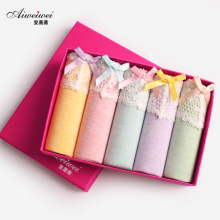 爱薇薇陌上花开女士棉质中低腰平角内裤 可爱少女蕾丝内衣 5条装