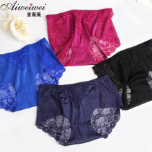 爱薇薇4条装 女士竹炭内裤中腰蕾丝三角性感内衣无痕大码礼盒
